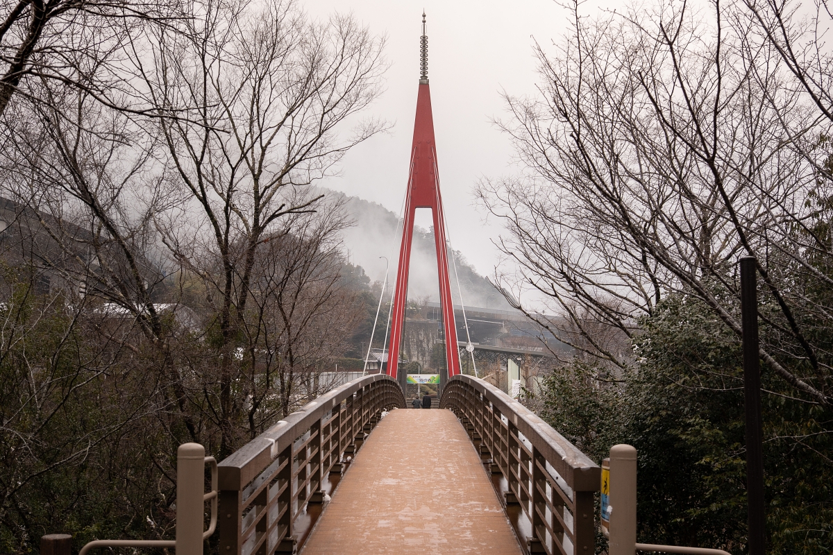 位於愛媛四國中央市的霧之森道路休息站,屬於複合式設施,不僅可以欣賞據說一年四季都雲霧繚繞的美景之外,還能品嚐當地一年一收無農藥新宮茶,餐廳提供新宮茶製作的蕎麥麵、茶甜點店可品嚐到各種新宮茶製作的甜點,還有新宮茶資料館與溫泉設施,群山與綠林圍繞的環境,加上清透的溪水潺潺聲,可謂是人間仙境,讓人感到無比放鬆,一下車就能感受到當地如其名般瀰漫著朦朧的霧氣,回程還遇到下雪,超級夢幻!