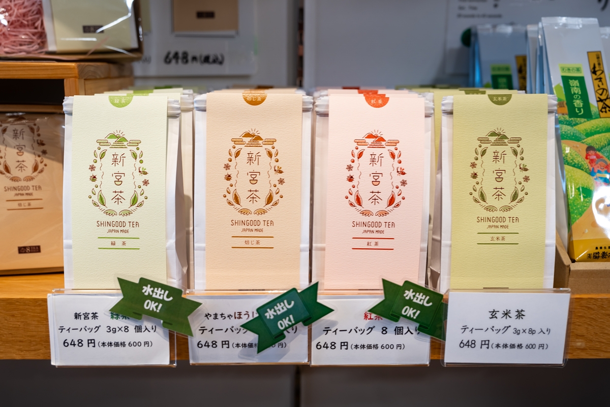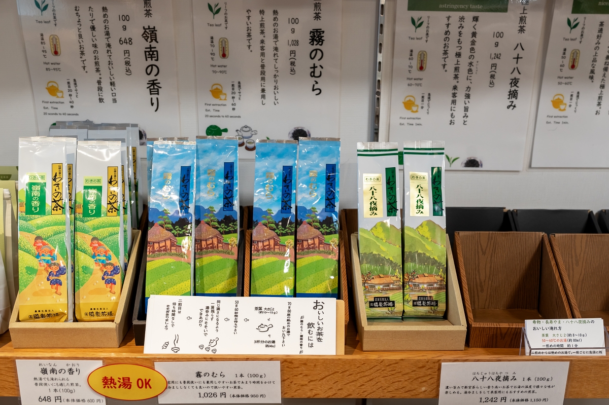 愛媛四國中央市高級的新宮茶每年僅在4月下旬到5月中旬採收一次,堅持不使用農藥,當地最知名就屬「八十八夜摘み」,立春當天開始的第88天採收的茶,店內販售包裝為散茶,我自己有買一包回來喝看看,自己泡也滿好喝的喔!