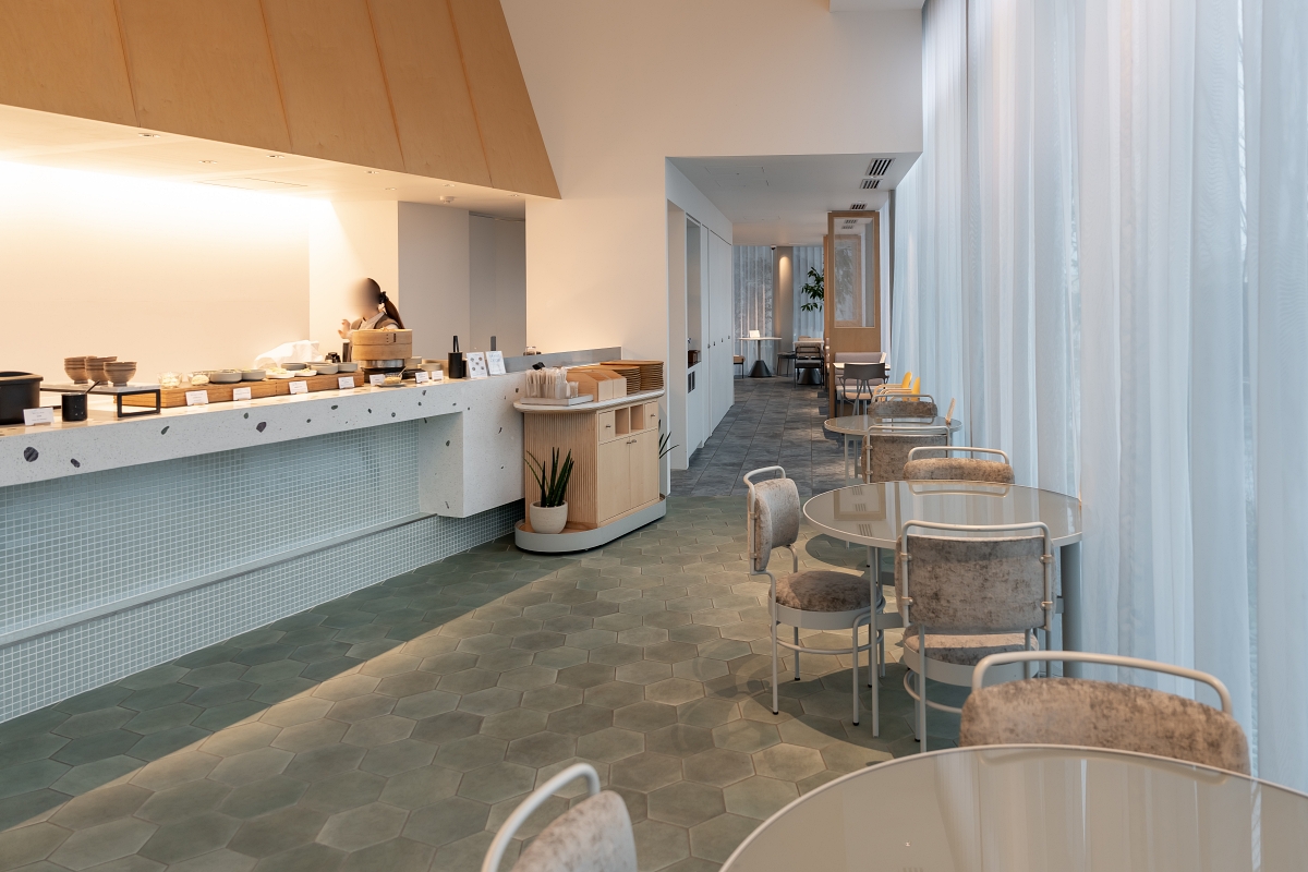 飯店內的裝潢也與西条地區大自然相呼應,飯店內使用伊予青石色調點綴,大廳櫃台更嵌入伊予青石作為裝飾,飯店內重點色帶著伊予青石的青綠色色調、大廳地板、櫃台使用嵌入伊予青石作為裝飾,也加入西条的水、和紙、音樂、物產、織物等在地特色來妝點飯店,加強當地印象。