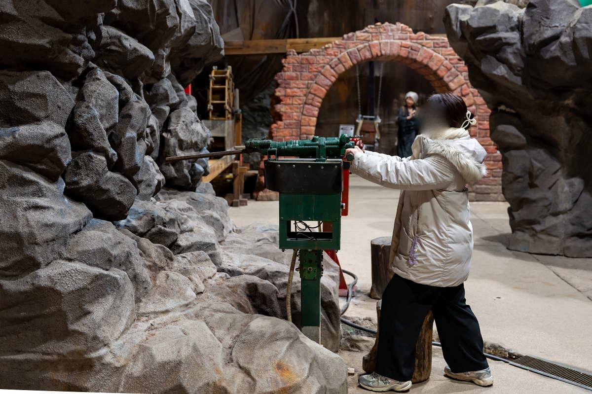 觀光礦坑內有人偶模擬當時採礦的樣貌之外,還可以體驗使用打石穿孔機器時震動感受。