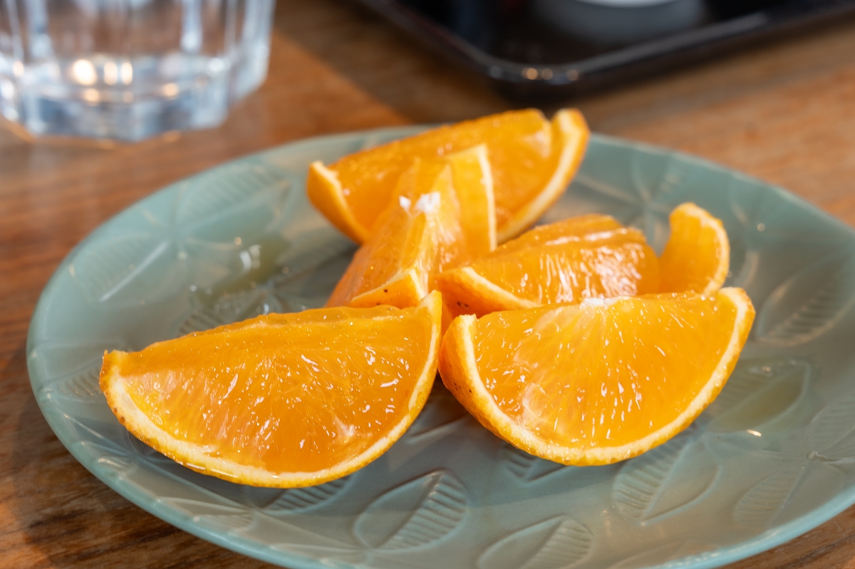 雅樂老闆在我們用完餐後送上一盤據說在蜜柑界價格算高的「紅瑪丹娜」蜜柑,取名字靈感來自夏目漱石小說「少爺」中女主角的名字,紅瑪丹娜皮薄汁多又甜,老闆說要用刀子切比較不會破壞果肉,大家一吃驚為天人,不僅多汁又甜,還保有蜜柑的香氣,一直詢問當地人哪裡還買得到。